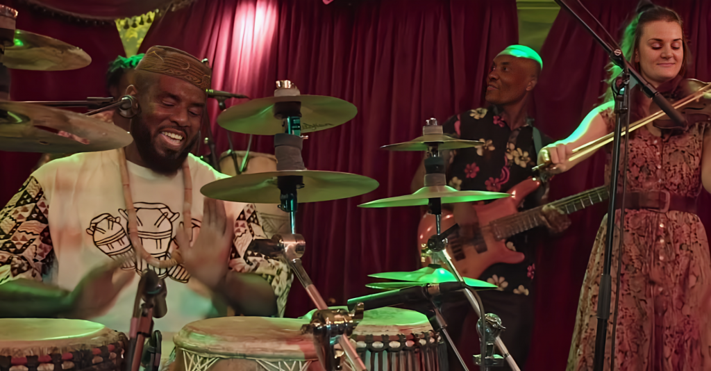Live performance led by master drummer Abass Dodoo who’s collaborated with the late CREAM drummer, Ginger Baker, Van Morrison, Pee Wee Ellis, Jonas Hellborg and Regi Wooten. Abass fuses traditional Ghanaian Highlife beats with funk, blues and jazz, adding chanted vocals, complex intersecting rhythms, and percussion into the mix.
